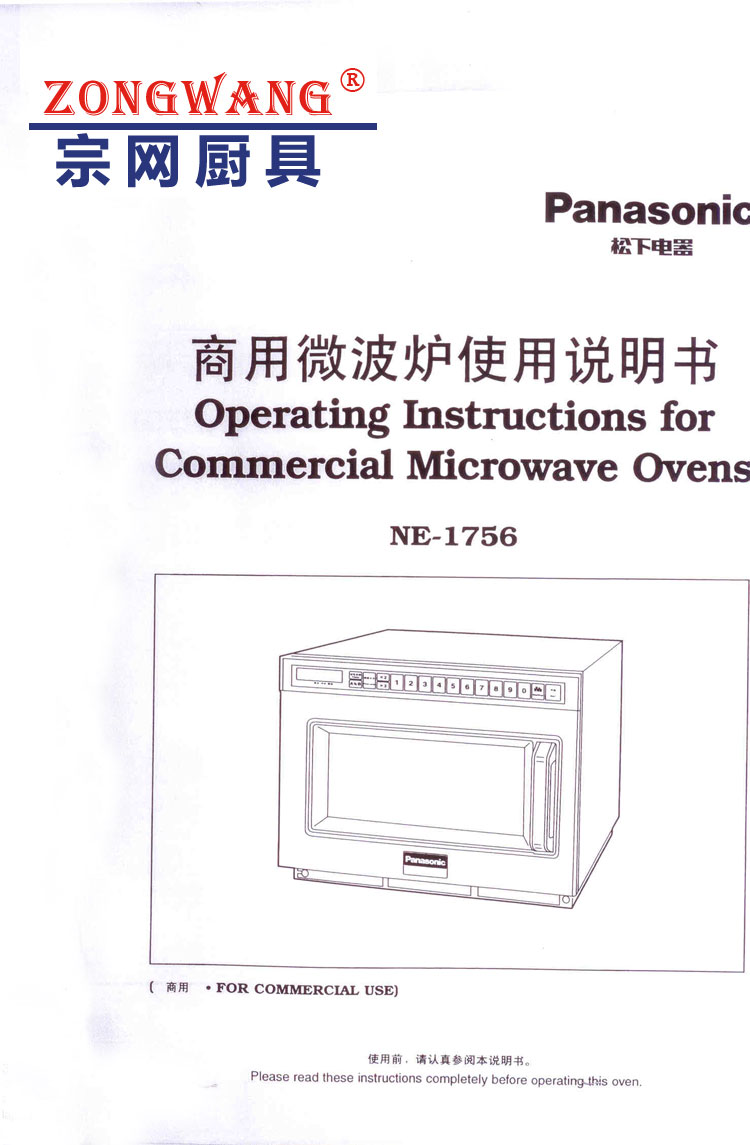 关于松下商用微波炉,NE-1756,NE-1756中文说明书,NE-1756说明书,松下商用微波炉说明书,输出功率Output :2780W,频率 Frequency: 2450MHZ,外部尺寸(宽*深*高):422毫米×508毫米×337毫米。定时器 Timer : 单项 30分钟(数字式)/10钮,全不锈钢内壁,炉瞠美观,耐磨,耐水浸,火烤,加强式设计,能胜任商店日常使用。松下NE-1756商用微波炉中文使用说明下载